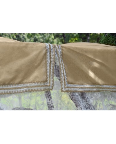 Тент: ткань мягкого элемента 40% п/э и 60% хлопок плотность 125 г/м2 с окантовкой тесьмой отделочной, с противомоскитной сеткой из полотна гардинного.